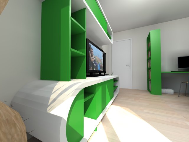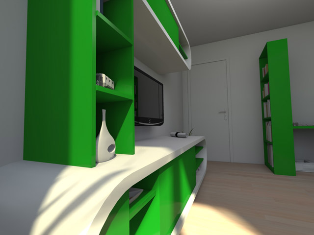 Garsoniera cu dublu rol, folosita de proprietar ca spatiu de lucru dar si ca locuinta.